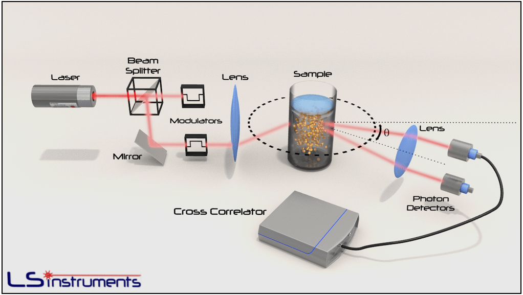與常規(guī)DLS儀器不同,NanoLab 3D使用了兩個(gè)以非常高頻率調(diào)制的激光束。因此,相當(dāng)于儀器同時(shí)進(jìn)行了兩次光散射實(shí)驗(yàn)。通過(guò)將兩個(gè)實(shí)驗(yàn)的信號(hào)相關(guān),抑制多重散射來(lái)提高精度,這樣避免在所有非稀溶液的體系測(cè)量中造成無(wú)法估量的誤差!調(diào)制3D技術(shù)有效抑制了在高濃體系中所產(chǎn)生的多重散射,將測(cè)量范圍拓展到了高濃度,并保證了測(cè)量的可靠性。