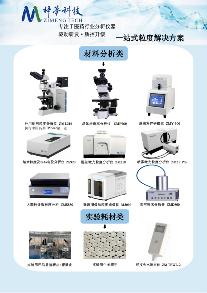 在A09展位,梓夢科技將攜帶設備外用制劑粒度分析儀ZML310、澄清度、可見異物檢查專用傘棚燈ZM-200A進行參展。梓夢科技針對當前創新藥研發的核心難點,提出針對性技術解決方案,驅動企業創新發展,提升企業質控升級效率。