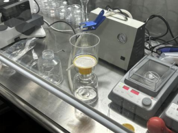檢查前的準備:在潔凈工作臺上將濾器用微粒檢查用水(或其他適宜溶劑)沖洗至潔凈,用平頭無齒鑷子夾取測定用濾膜,用微粒檢查用水(或其他適宜溶劑)沖洗后,置濾器托架上;固定濾器,倒置,反復用微粒檢查用水(或其他適宜溶劑)沖洗濾器內壁,控干后安裝在抽濾瓶上,備用。