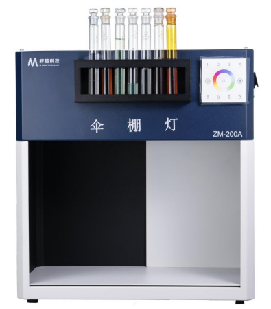 此外,澄清度專用傘棚燈ZM-200A的白色光光照可達30000Lx,紅色光可達10000Lx,燈光照度大小采用觸摸屏調節,操作簡單。