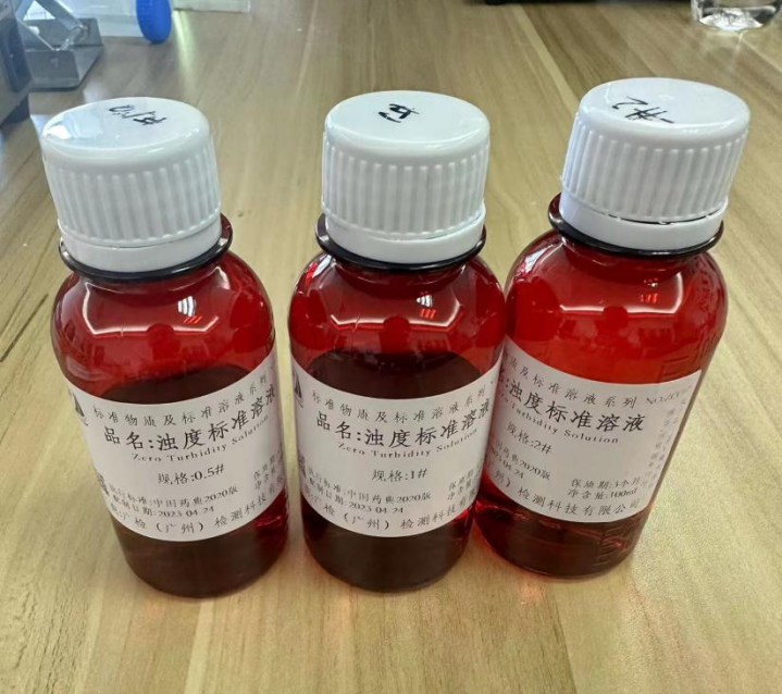 濁度標(biāo)準(zhǔn)液應(yīng)臨用時制備,使用前充分搖勻。 現(xiàn)在市場上有濁度標(biāo)準(zhǔn)液的售賣,可以直接買。