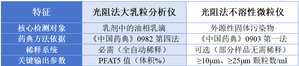 在2025版《中國藥典》的框架下,光阻法不溶性微粒儀和光阻法大乳粒分析儀雖共享“光阻法”這一基礎(chǔ)原理,卻在檢測目標(biāo)、技術(shù)實現(xiàn)和藥典合規(guī)要求方面存在實質(zhì)性差異。這些差異直接決定了它們在藥物質(zhì)量控制中的專屬應(yīng)用場景。