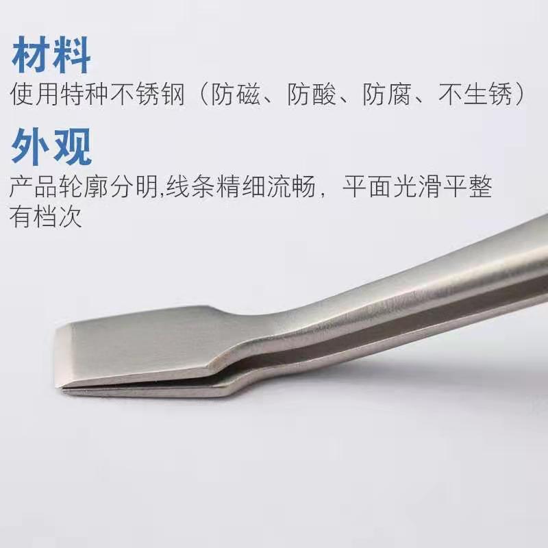 顯微鏡法不溶性微粒測試專用彎頭鑷子,可以用來夾取過濾前后的濾膜,保持濾膜平整度不受影響,便于顯微鏡對平臺上濾膜的掃描,進行不溶性微粒的分析.