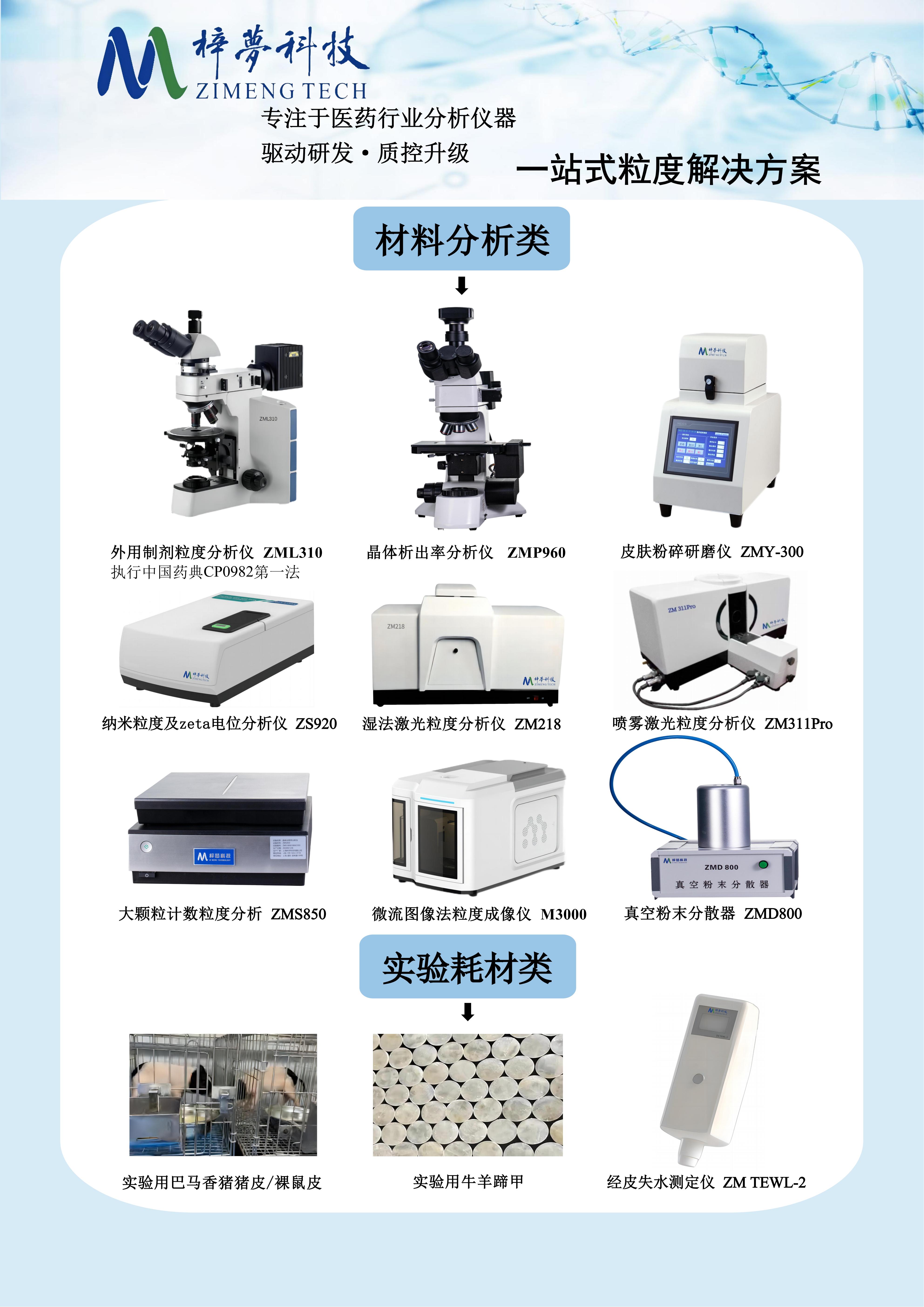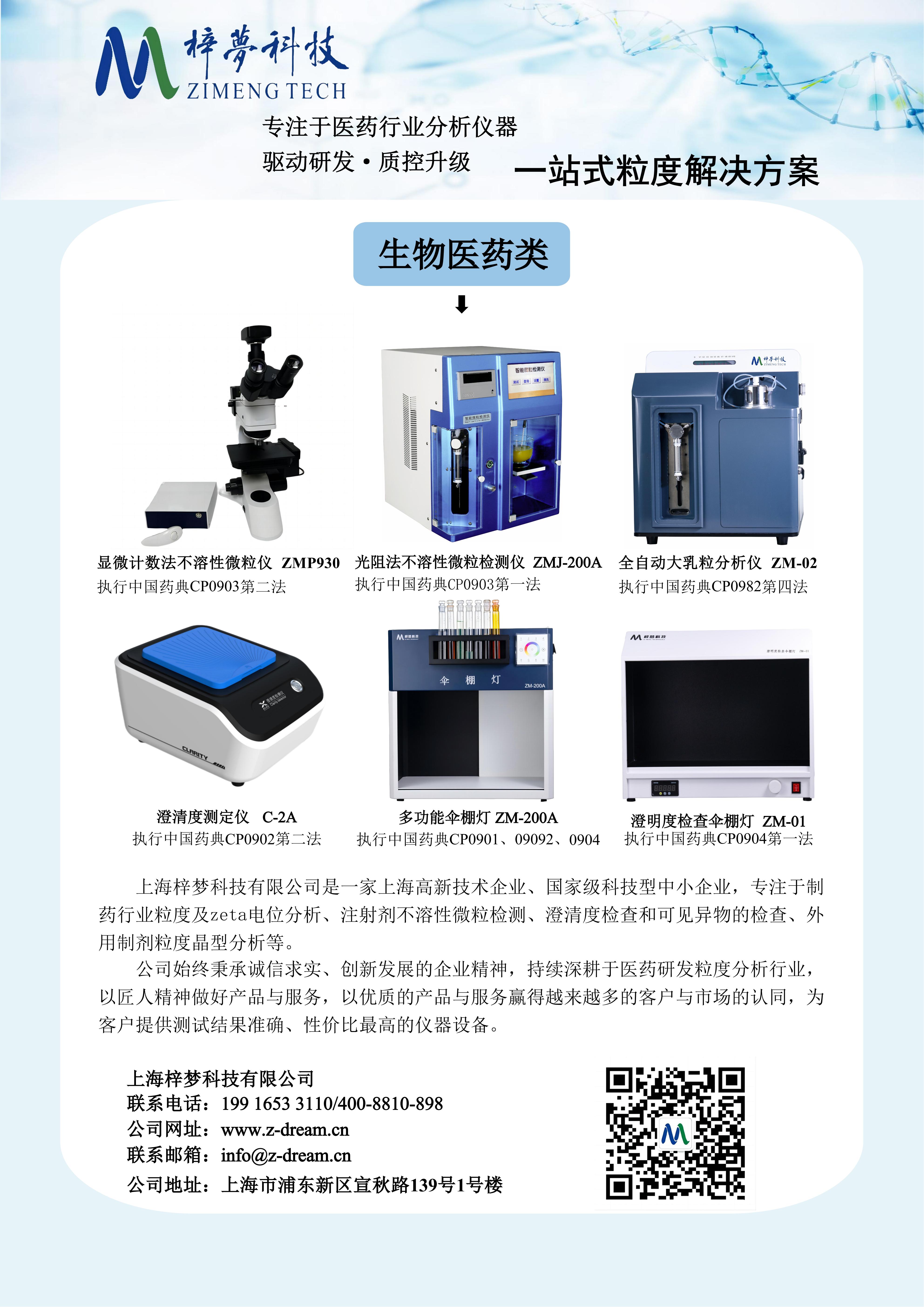 上海梓夢科技有限公司是專注于醫藥分析儀器研發與服務的國家級高新技術企業,持續深耕于醫藥研發粒度、微粒分析領域,以 “誠信求實、創新發展” 為核心精神,秉承匠人理念打造精準檢測設備,為醫藥及先進制造行業提供 “儀器 + 方案 + 服務” 一體化解決方案,成為 2025 版《中國藥典》實施的核心技術響應者。